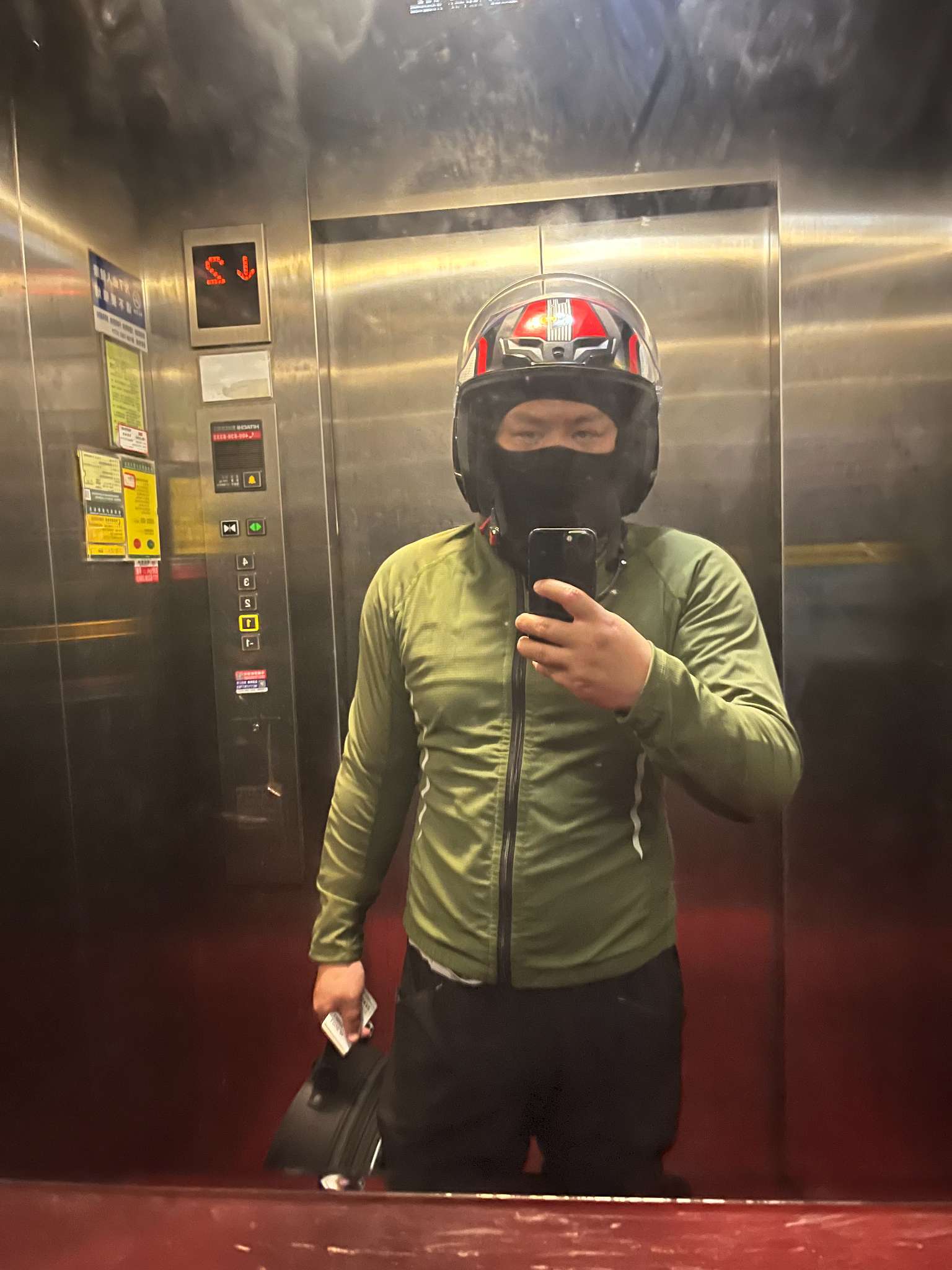 我进了万达商城,看着雨一直未停,感觉稍小时就开始回程。靴子是防水的,但靴筒朝上是开放的,雨水沿着腿导流进了靴里。回到住处,在旅店唯一的安保人员指挥下把车插在前后停放的两汽车之间。看到门口多了一辆挂三箱的摩托,北京牌,用大撑立着,我一边进店时一边跟门口保安大哥说,咱这能不能骑摩托,答曰不知道。回到房间擦干身子换了衣服。拧了淋湿的衣物,出门看那晒衣处,衣裤比刚才看到的少了。回身又到房里,拿起那几根衣架挂上湿衣服,才注意那衣架本应是挂钩的地方是一个完全闭合的圆圈,可以挂在墙上突出的东西上,不能挂杆上。